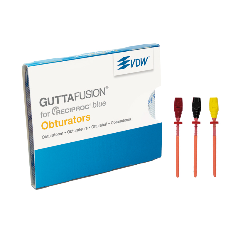 Guttafusion Reciproc blu R50 , iso 50 , codice colore giallo , 6 otturatori guttapercha VDW V041551000050Otturazione termoplastica di VDW Otturatori Guttafusion per sistema Reciproc Blue, prodotto interamente in guttaperca Otturazione con guttaperca calda in 3D, facile e omogenea, manico per una sicura collocazione manuale. Disponibile in dimensione R25, R40 e R50
