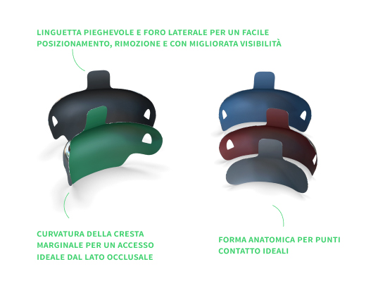 <b>Matrici sezionali in acciaio inossidabile ultrasottile con forma anatomica.</b> Le matrici sezionali Halo sono in acciaio inossidabile ultrasottile, da 0,038 mm, la loro forma anatomica assicura punti di contatto stretti a garanzia della longevitą del restauro. In particolare, la curvatura della cresta marginale consente un accesso ideale dal lato occlusale, riducendo il tempo di rifinitura. Disponibili nella versione Original per una migliore adattabilitą e brunitura, nella versione Firm, restistono alla deformazione e sono adatte per spazi interprossimali ristretti e, nella versione Firm non-stick, codificate per colore. Sono dotate di linguetta pieghevole e foro laterale per un facile posizionamento e rimozione con visibilitą migliorata. <b>Caratteristiche:</b> • Forma anatomica per punti di contatto ideali • La curvatura della cresta marginale consente un accesso ideale dal lato occlusale, riducendo il tempo di rifinitura • Linguetta pieghevole e foro laterale per facile posizionamento e rimozione con visibilitą migliorata • Matrici “Original” per una migliore adattabilitą e brunitura • Matrici “Firm” resistono alla deformazione e sono adatte per spazi interprossimali ristretti • Matrici “Firm nonstick“, codificate per colore • Le matrici “Original” e “Firm” sono in acciaio inossidabile ultrasottile da 0,038 mm HALO ORIGINAL MATRICI SEZIONALI A BANDE 5,5mm - confezione da 100pz - Cod. 5453 Ultradent