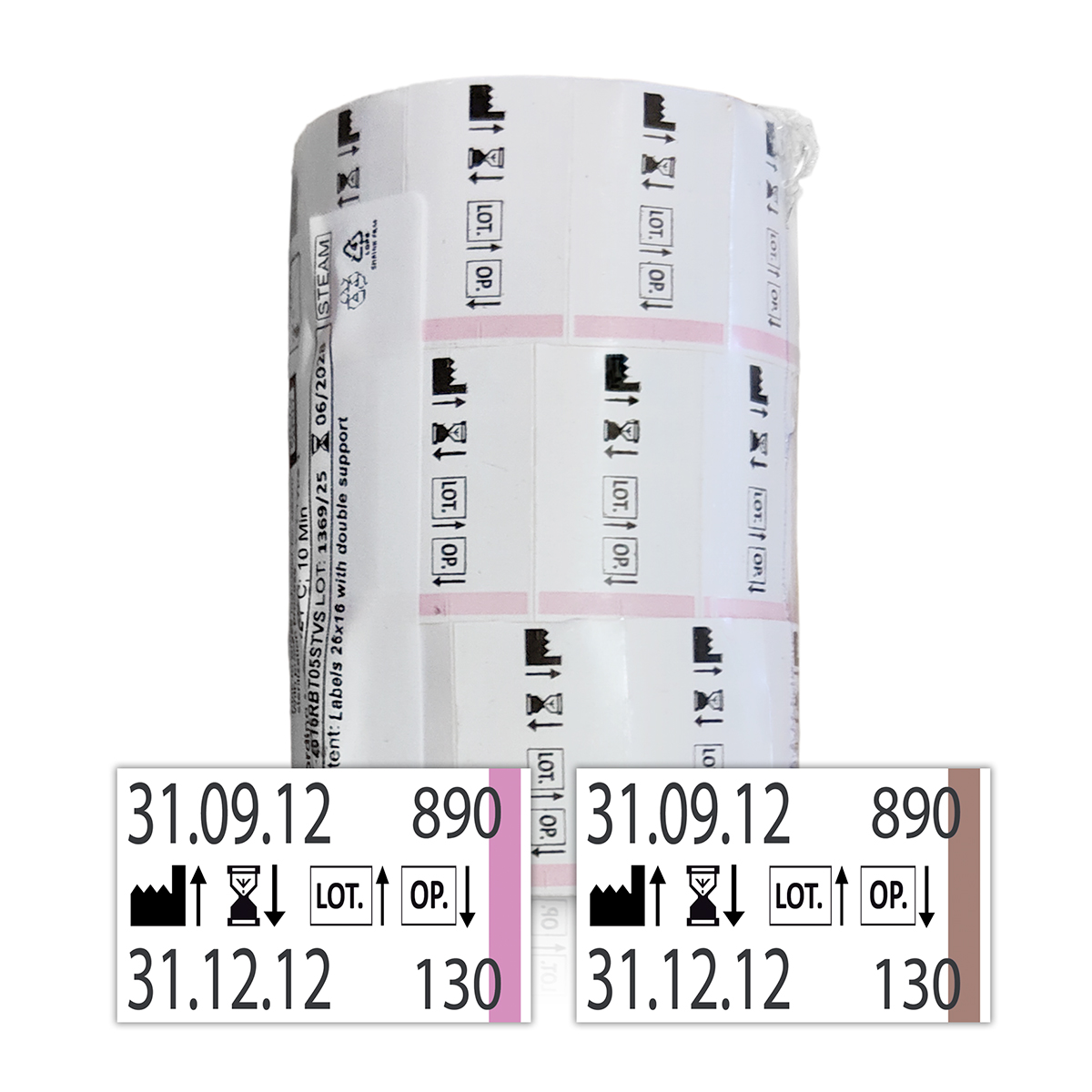 Etichette a 2 linee di stampa con indicatore di processo compatibili con Mark 3, Mark 4 e Printex Medical. Le etichette si stampano su due righe che riportano: - data di sterilizzazione - data di scadenza - numero del ciclo di sterilizzazione - numero dell’operatore che esegue le operazioni di sterilizzazione. <b>Indicatore di processo di classe 1</b> (conforme alla normativa EN ISO 11140-1) ad avvenuta sterilizzazione, l'indicatore da rosa diventa di colore marrone. Le etichette sono con doppio supporto adesivo: l’operatore può staccarla dalla busta al termine dell’operazione e apporla alla cartella clinica del paziente. In questo modo è possibile risalire velocemente agli strumenti utilizzati durante l’intervento, assicurando al paziente la condizione di sterilità degli stessi, e sollevando l’odontoiatra da possibili implicazioni legali. L’inchiostro dell'etichettatrice è atossico e resistente al vapore. Confezione: 3 rotoli da 500 etichette 26x16 mm.